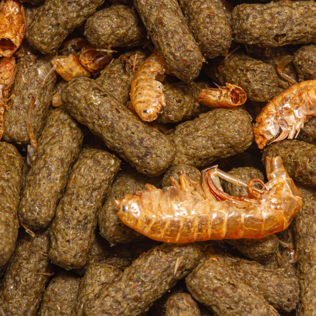 A farinha de peixe e o krill fornecem proteínas de alta qualidade e ácidos graxos ômega-3, essenciais para o crescimento e vitalidade das tartarugas. O camarão é uma rica fonte de proteínas e minerais, enquanto o gammarus além de ser um delicioso petisco, complementa a dieta com proteínas naturais.